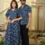 Couple Matching Blue Leaf Print Cotton Anarkali Midi Dress and Shirt Set