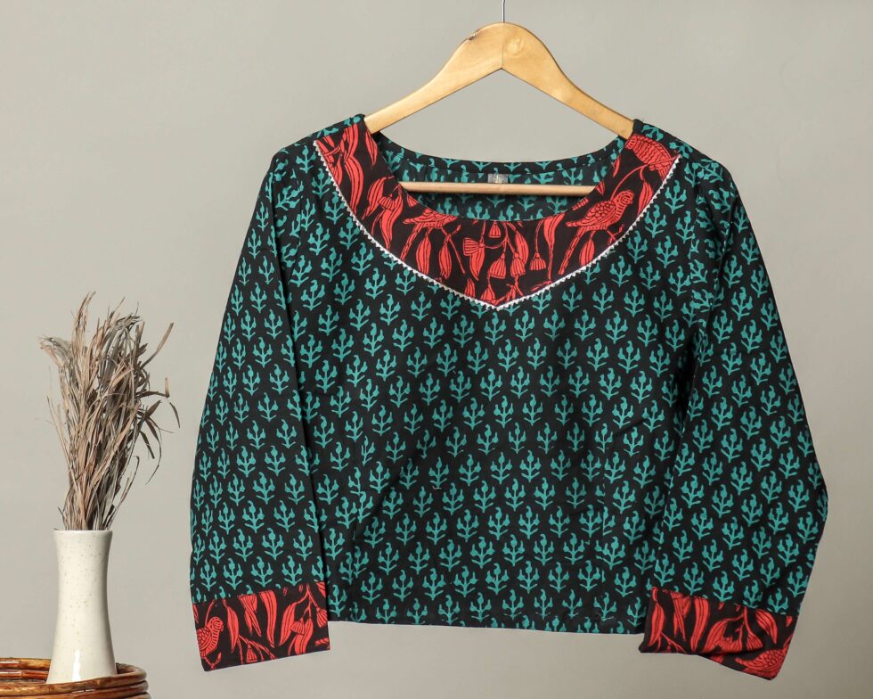 Handmade Block Print Cotton for Women ? Ethnic Floral Printed Top with Long Sleeves