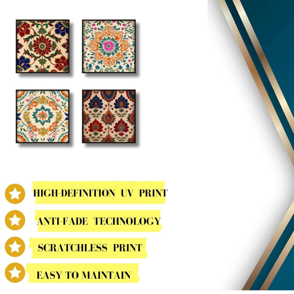 This captivating wall painting seamlessly blends traditional artistry with contemporary design, making it a perfect addition to any modern living space. Crafted with meticulous attention to detail, it features intricate patterns and vibrant colors that evoke a sense of harmony and cultural richness. Ideal for enhancing the ambiance of your home or office, this artwork serves as a testament to timeless craftsmanship and artistic expression.