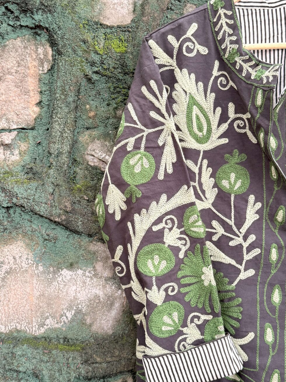Elevate your festive and ethnic look with this stunning Suzani Embroidered Velvet Jacket. Crafted from premium-quality soft velvet fabric, this jacket offers a luxurious feel and rich texture that enhances every outfit. The intricate Suzani embroidery adds a royal charm and artistic appeal, making it a perfect fusion of traditional craftsmanship and modern style.